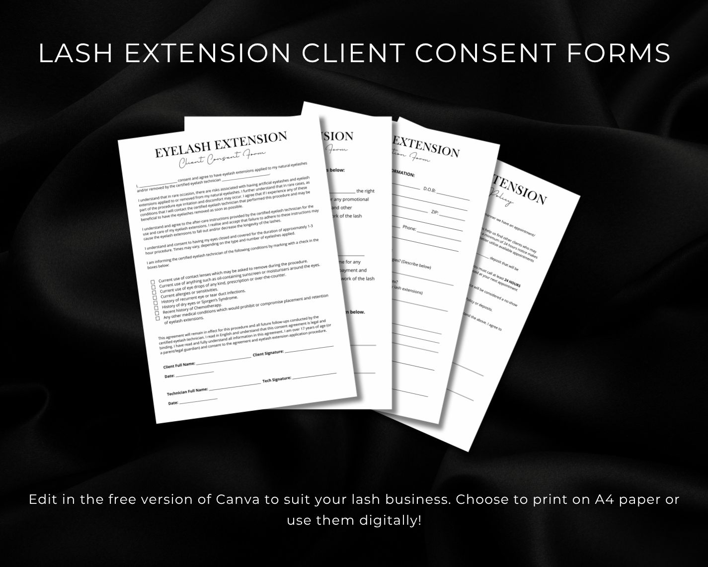 ✔️ 4x Lash Extension Consent Forms (Canva Template) – Professional, printable, and brand-able forms for client safety and trust