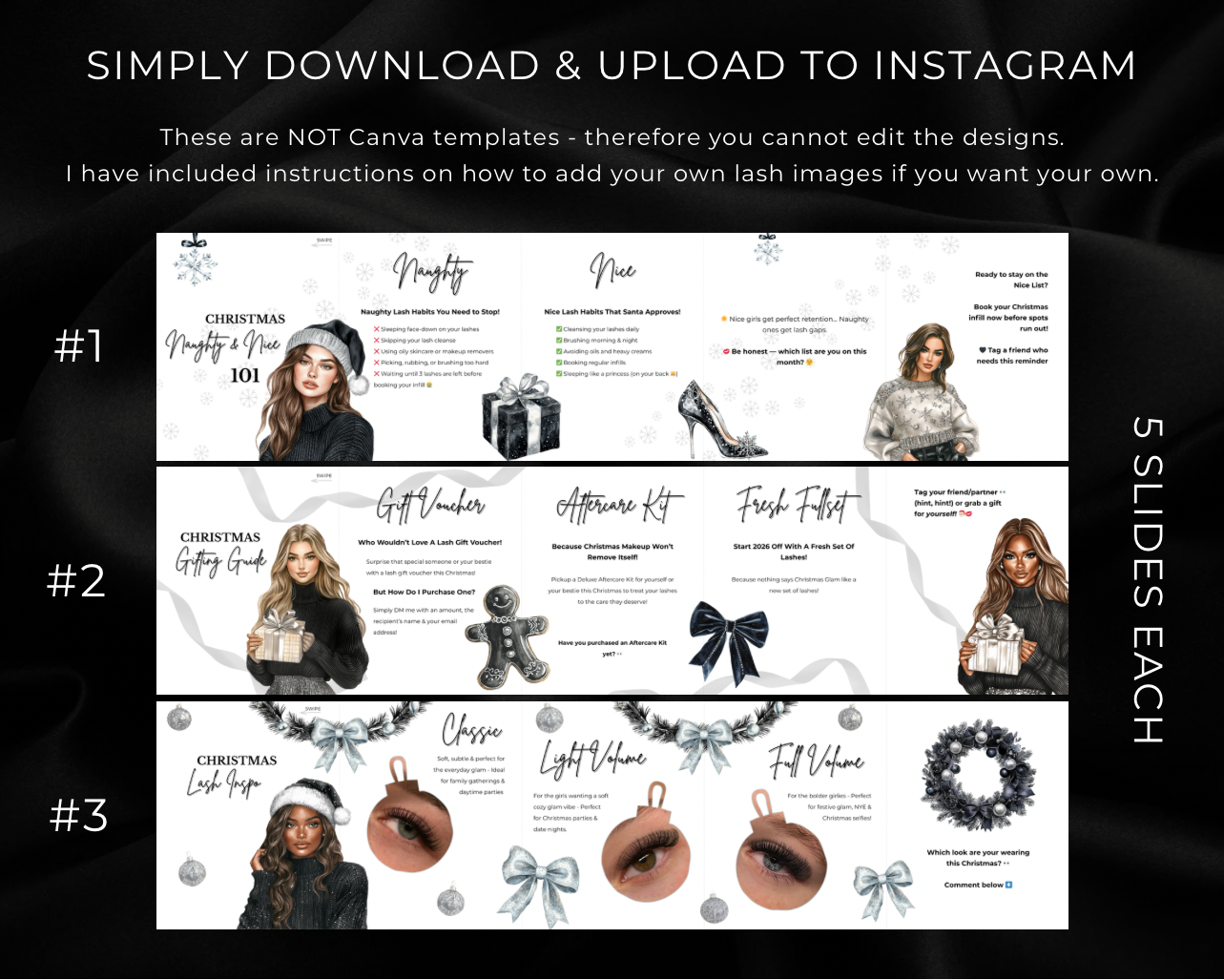These premade Christmas Instagram carousels are designed specifically for lash artists who want to stay on-brand and festive without spending hours creating content.