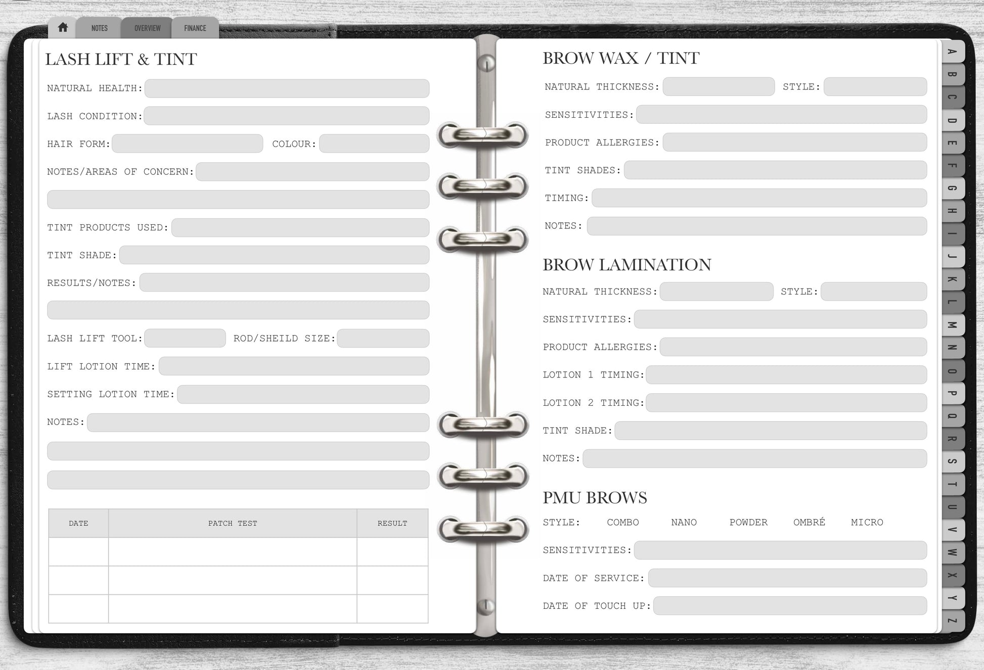 Our newest Client Record Book for lash & brow artists is finally here! This is the ultimate upgrade combining our Lash Extension, Lash Lift + Tint & Brow Client Record Books all together – featuring 4 detailed pages per client for a truly comprehensive experience.